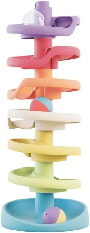 This marble track is designed for young children. In the kit there are 7 elements, of different colour, to compose high towers from which you can launch the marbles. The large marbles are safe and easy to grasp; inside they have coloured beads that emit nice sounds for a complete visual and auditory stimulation. Spiral Tower develops the attention of children, eye-hand coordination and the concept of cause-effect.