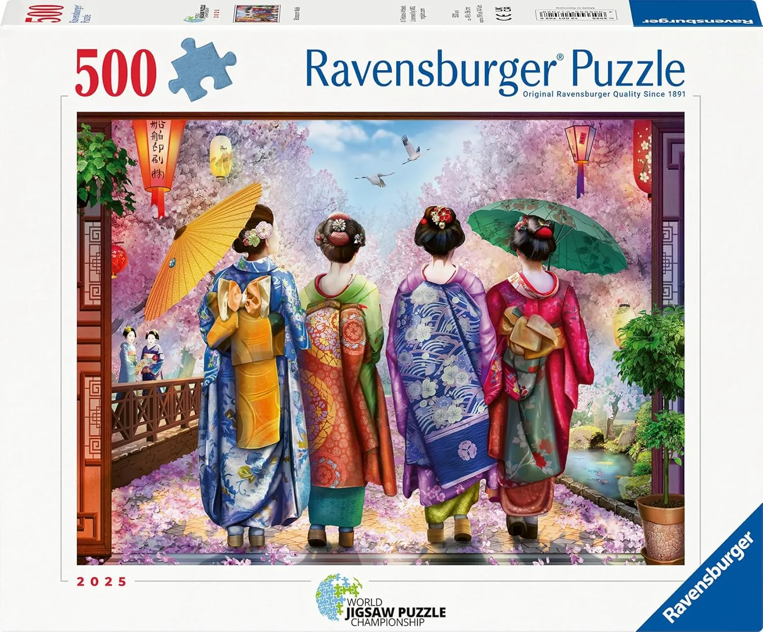 Immerse yourself in the timeless beauty of Japanese culture with this 500-piece jigsaw puzzle, Blossom Walk. Delicately illustrated, the puzzle portrays elegant Japanese ladies strolling under a canopy of cherry blossoms, their graceful movements accentuated by colourful umbrellas and softly glowing lanterns. This puzzle offers the perfect balance of challenge and relaxation, making it an ideal choice for a cozy afternoon or a peaceful evening of puzzling. As you connect each piece, you’ll be transported to a world of gentle breezes, fragrant flowers, and elegant tradition.