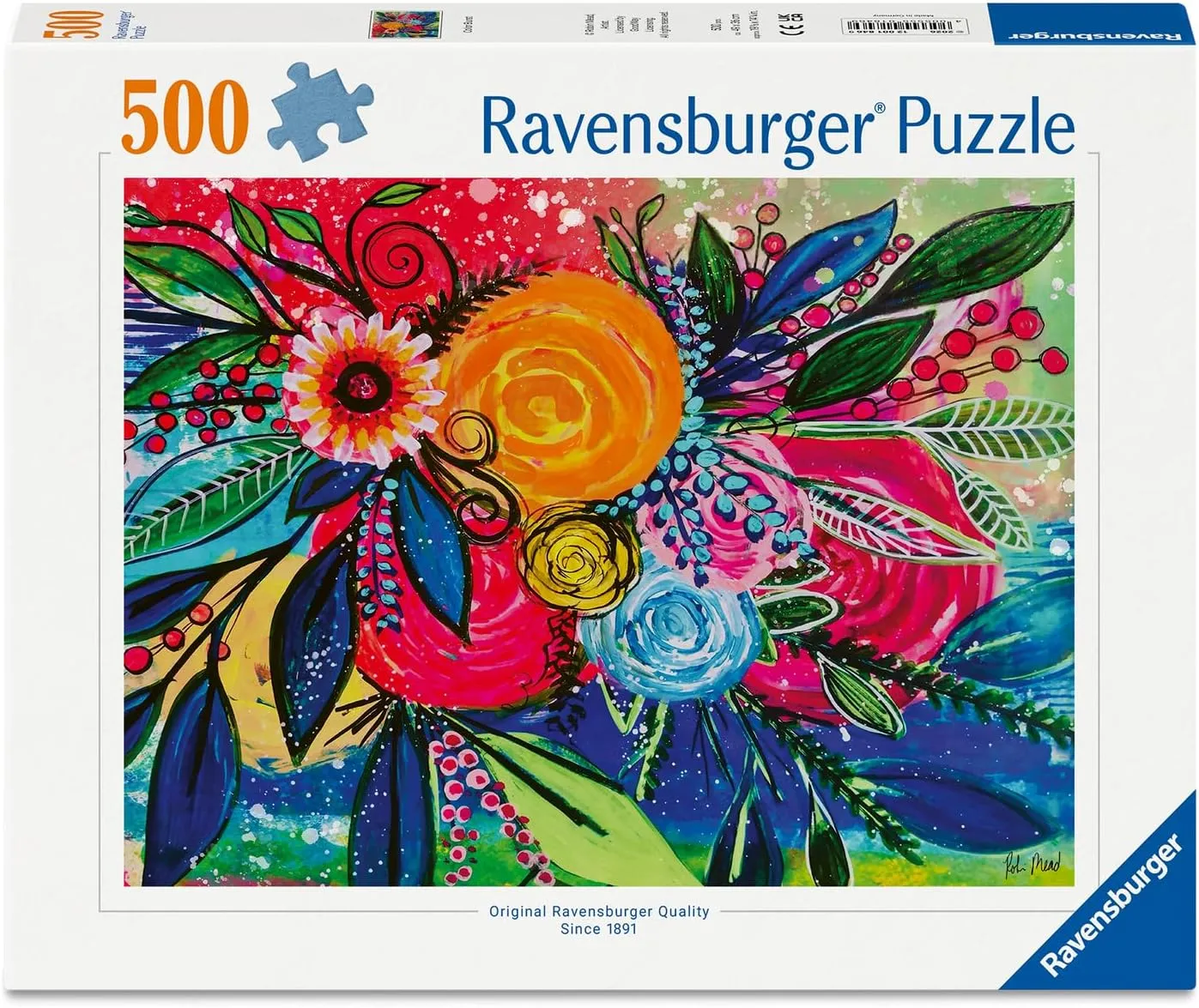 Give yourself a brilliant bouquet and permission to take time for yourself (for a change) as you relax with our Ravensburger “Colour Burst” 500-piece jigsaw puzzle by artist Robin Mead. Bursting with bold blues, rosy reds, and outstanding oranges, this vibrant design is sure to brighten your day and bring you to your happy place. Take a break, unwind, and enjoy hours of calming, colourful fun as you piece together this stunning puzzle.