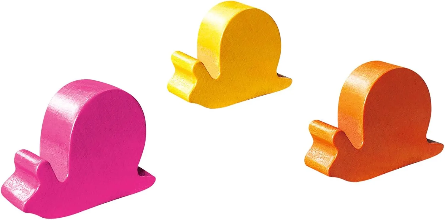 Contents: 6 Wooden snails, 2 coloured dice, 1 playing board, instructions.