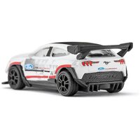 Here you see an absolute masterpiece of motor sport development: The Ford Mustang Mach-E 1400. Almost incredible that this sleek racing car with its giant rear spoiler and the huge 1,500 HP under the bonnet is an electric vehicle! 3, 2, 1, GO! The E-Mustang accelerates effortlessly to maximum speed, and leaves the competition behind in no time at all. Sporting rims with rubberised tyres provide optimum grip, even in tight curves. With ultra-cool racing design and detailed prints, the speedster’s metal body also captivates: dazzling white with multicoloured design and logo accents – and on top of that, the awe-inspiring black rims… a dream for all fans of the legendary American vehicles. By the way, this fully detailed likeness of the original racing car is a one-off.