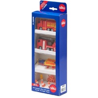 An emergency call comes into the control centre. The fire brigade gets ready for its mission. This fire brigade set from Siku brings together three unique emergency vehicles. The three-axle HGV with metal driver’s cab is equipped with a rescue platform which rotates through 360 degrees and has three articulated joints. This means that the ladder with its attached basket can be extended to an impressive height and the basket can be aligned as required. This greatly simplifies rescues, even from great heights. For this, the fire truck provides support by fighting the fire at the incident. Both vehicles have high-speed wheels, so they can race to the incident at lightning speed. For transport and monitoring from the air, an aircraft in fire brigade colours is also included.