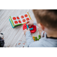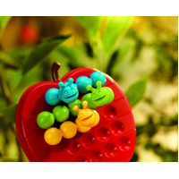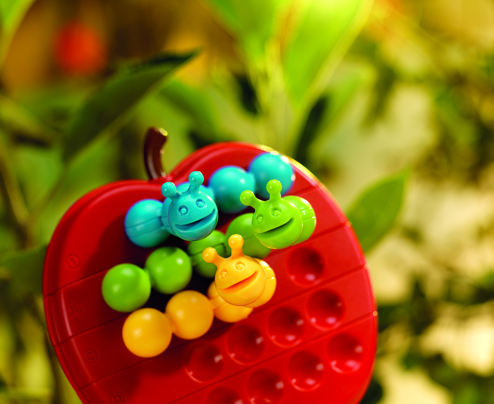 Three hungry caterpillars want to eat from the same apple. Can you bend them into shape so that they all can fit? This logic game requires flexible thinking! The caterpillars are adjustable…and so is the apple game board!