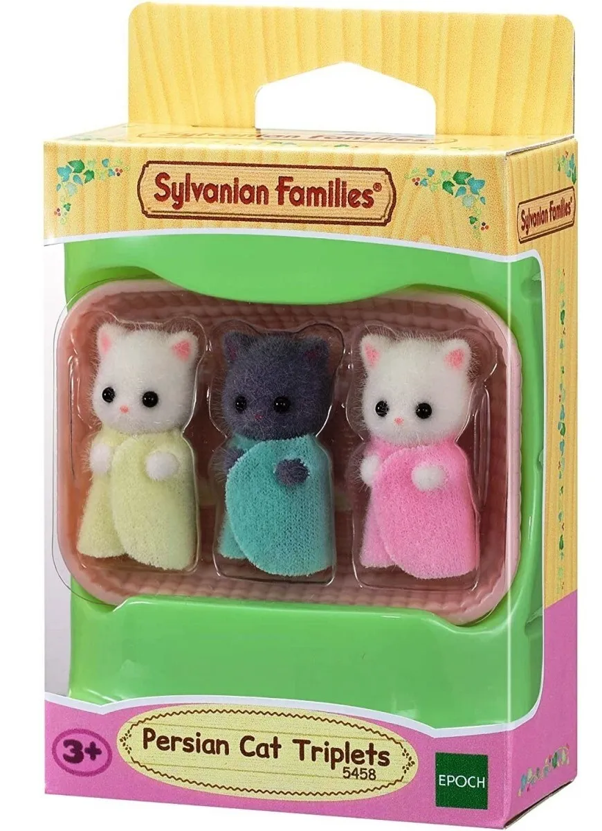 Meet the Sylvanian Families Persian Cat Triplets, pack includes Blair, Blake and Brianna.