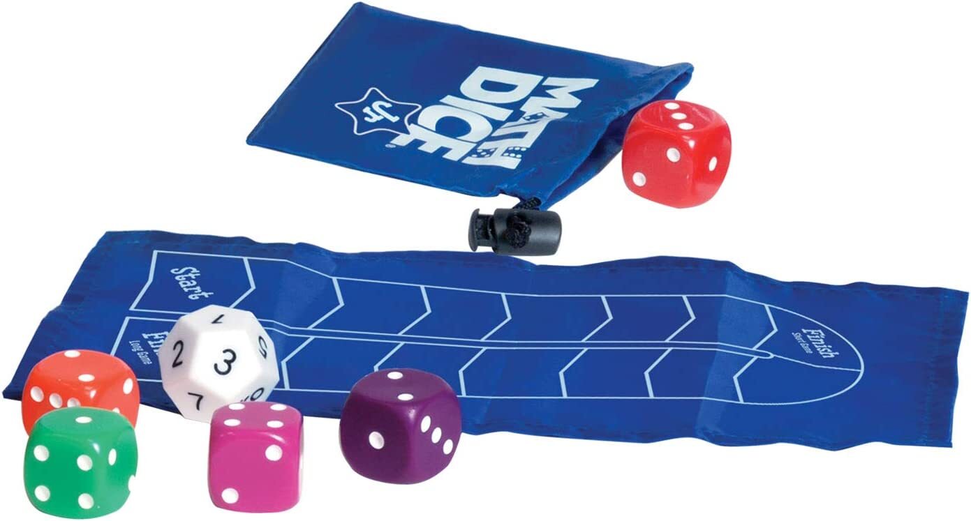 Math Dice Jr. is the perfect complement to ThinkFun's ever-popular Math Dice! Roll the 12-sided Target Die to get your target number, then roll the five 6-sided Scoring Dice. Using addition and/or subtraction, combine the Scoring Dice to match the target number, moving one space on the Scoring Track for every Scoring Die used. The first player to reach the finish line wins!