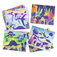 - Scratch Art set featuring beautifully illustrated dinosaurs
