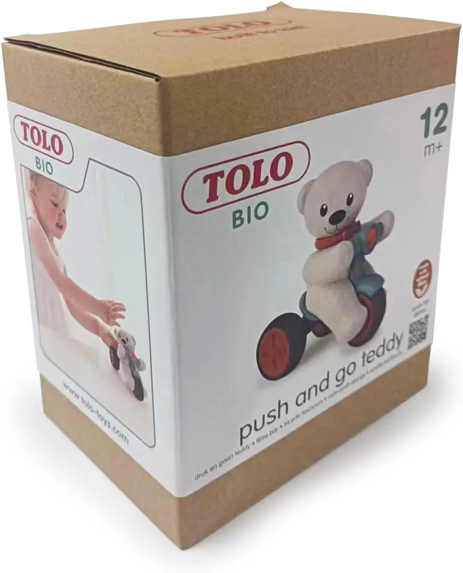 This toy is designed to be durable, even in the most demanding of play environments. Its surface is smooth and shiny, with no sharp edges. Its plastics are also BPA and phthalate free. This means that every parent can rest, assured that the Bio Push & Go Teddy is safe for children. Tolo Toys products really built to last.
