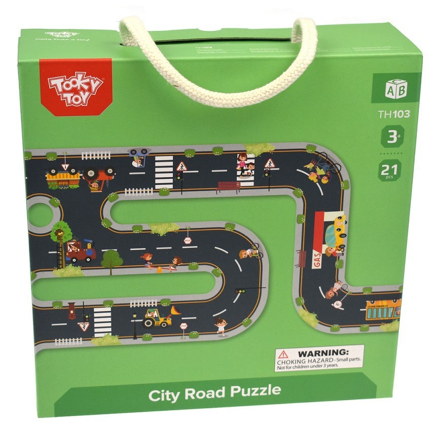 City Road Playset comprises of 20 chunky road puzzle pieces that can be arranged to create different layouts. Design your own city using the chunky puzzle road pieces. Cars not included.
