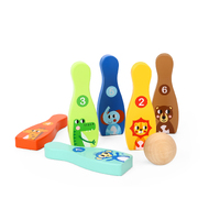Each colourful skittle features a different animal, colour and number. Set them up and see if you can knock them down. Set includes 6 wooden pins plus ball.